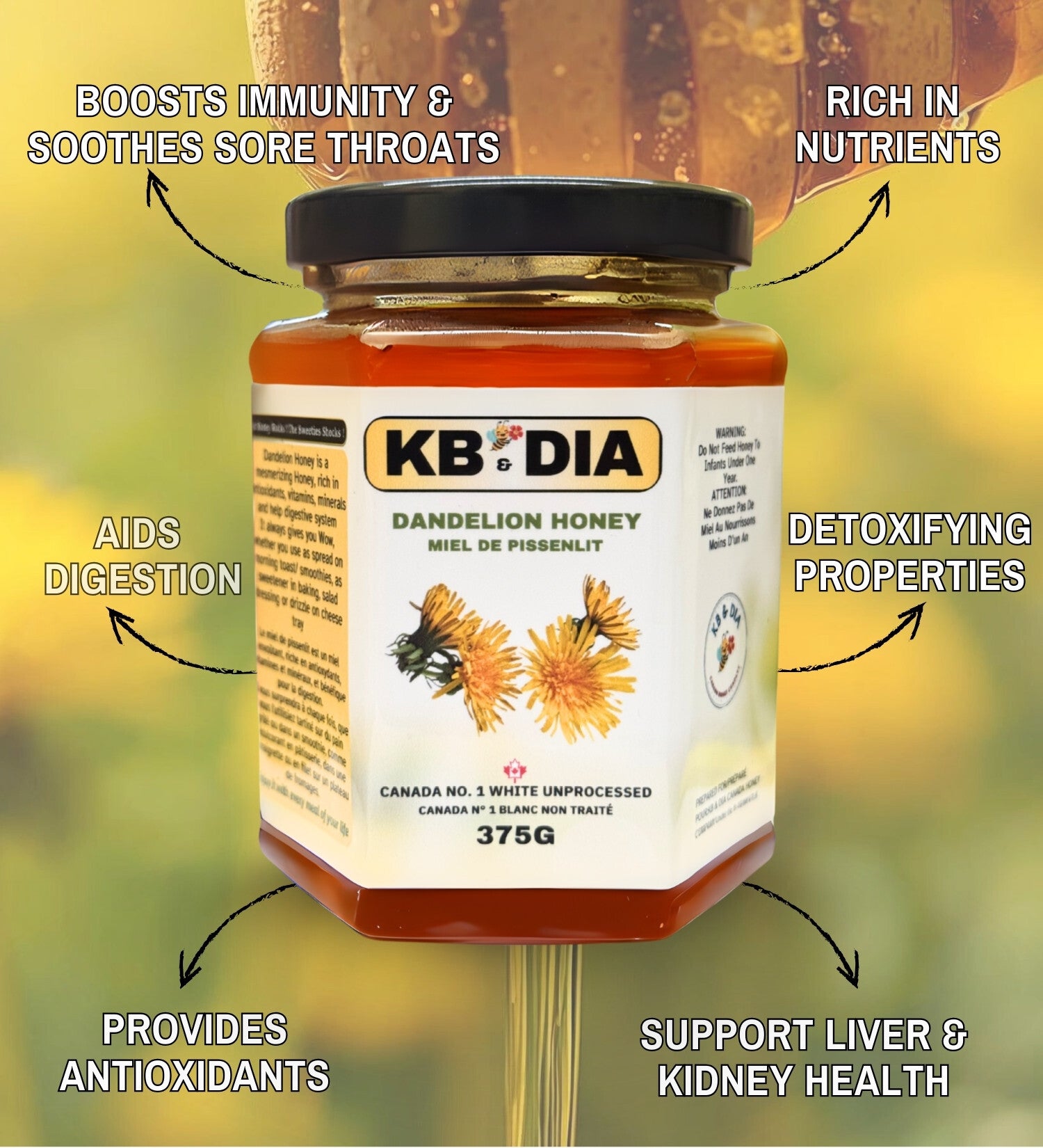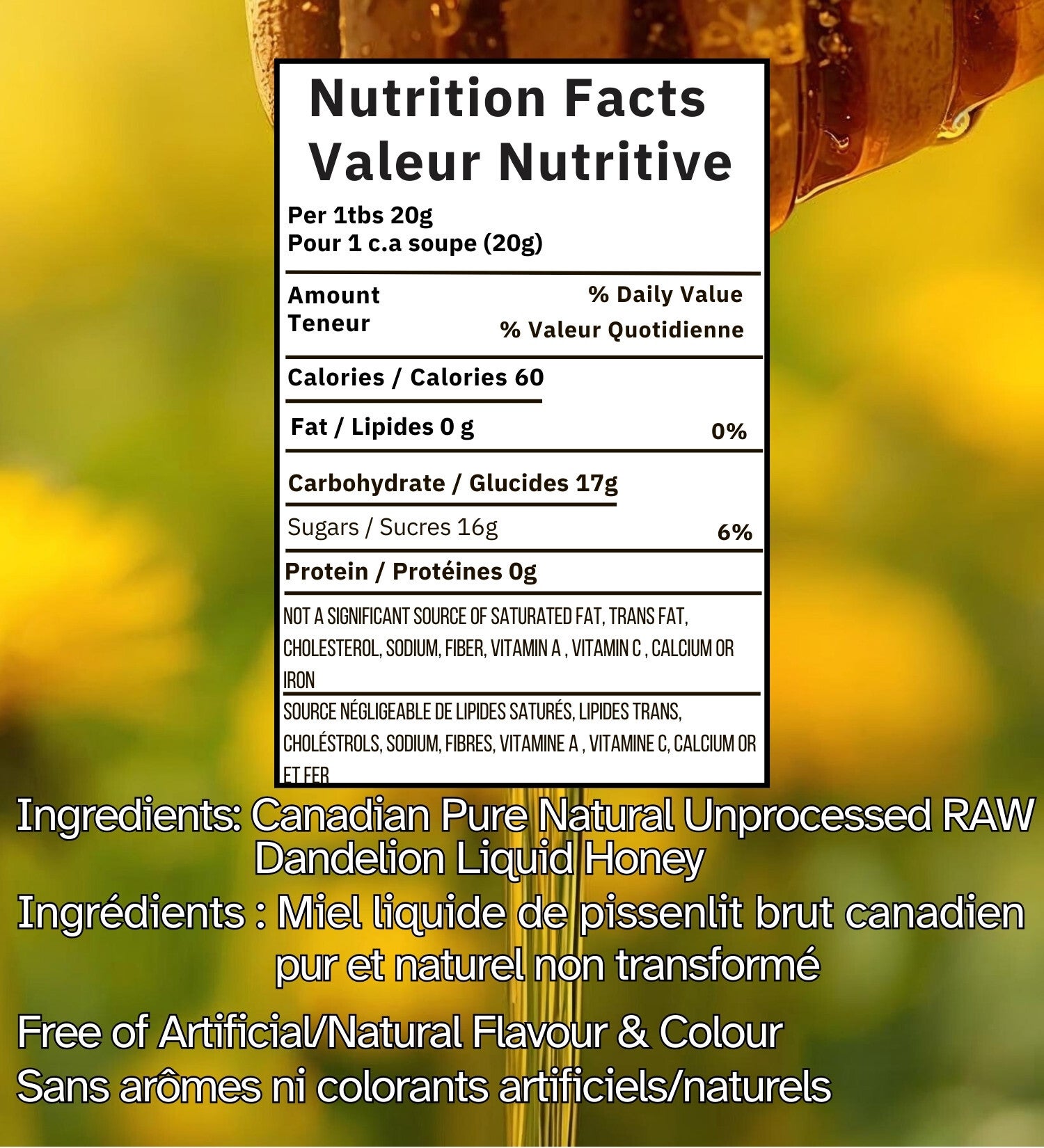 Dandelion Blossom Honey Canada No. 1 | Pure Canadian Honey | Raw | Unpasteurized | Unprocessed | Liquid