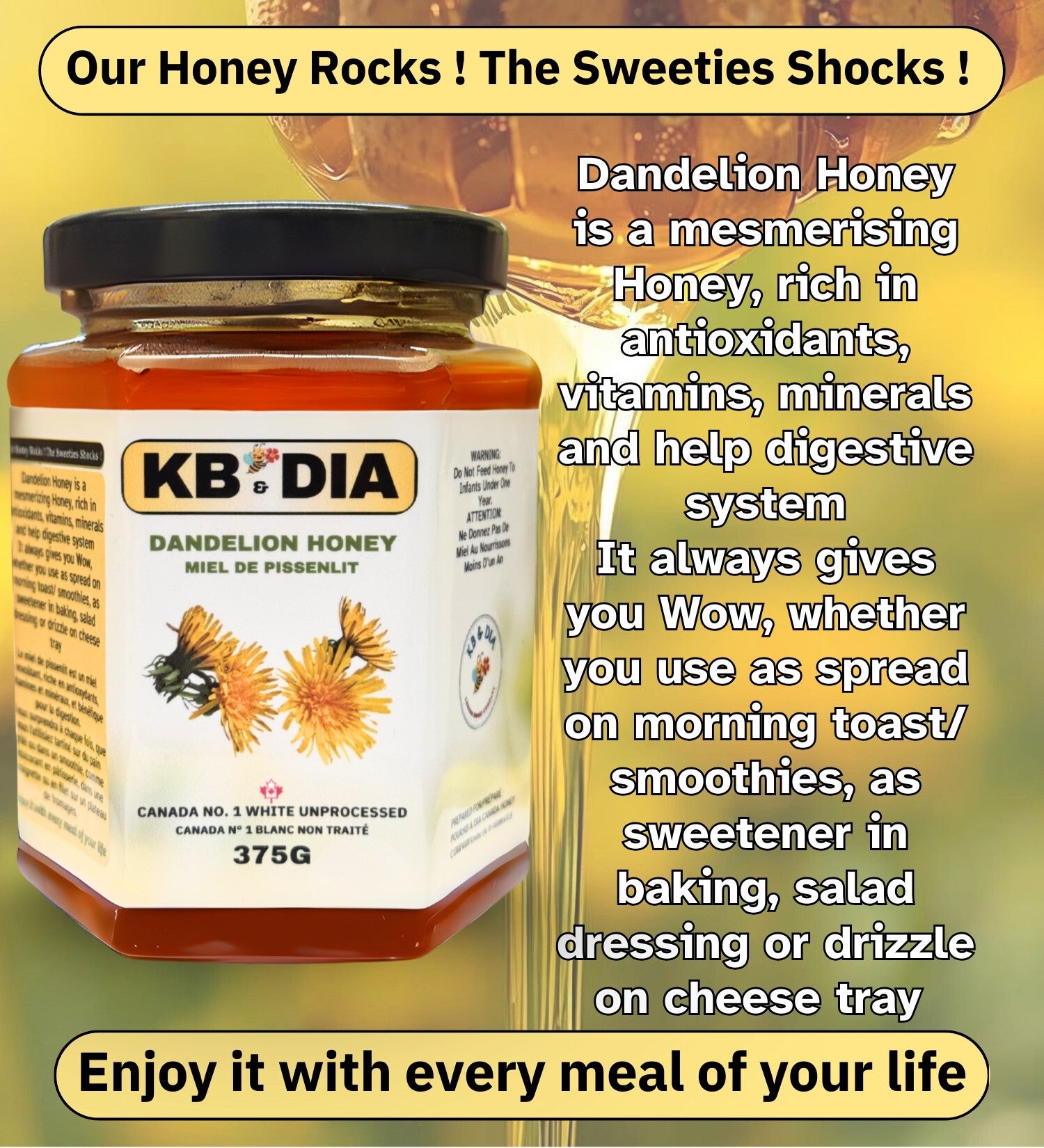 - SINGLE-SOURCE PLEDGE: Guaranteed 100% genuine Canadian Dandelion Honey from a local, single source, free from corn syrup, additives, or blends. Experience the taste of springtime purity with our full satisfaction guarantee.