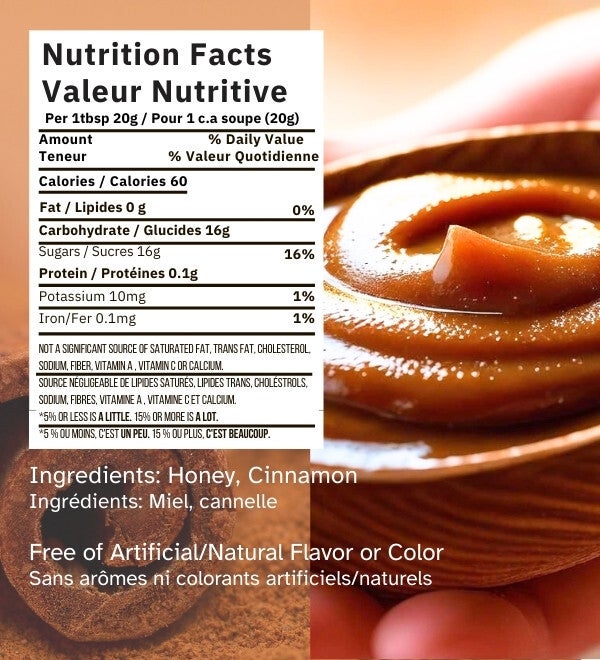 Delicious Flavour: This creamed cinnamon honey combines the rich taste of pure Canadian honey with the cinnamon for a flavourful and delicious treat.