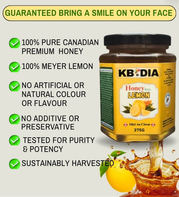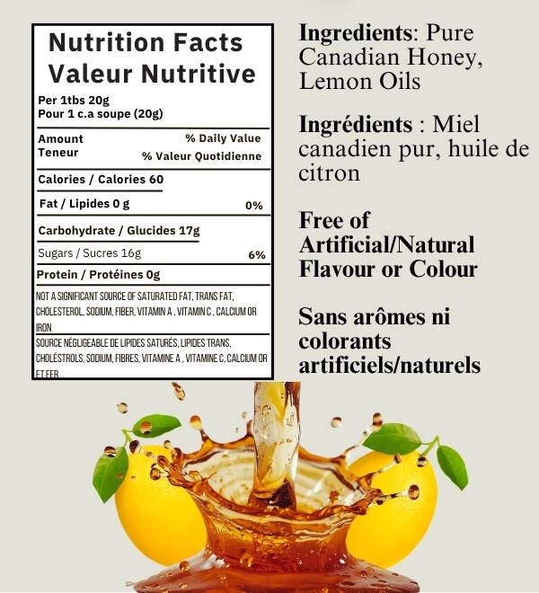 Lemon Honey | Raw Unprocessed Canadian Liquid Honey with Real Lemon | 375G