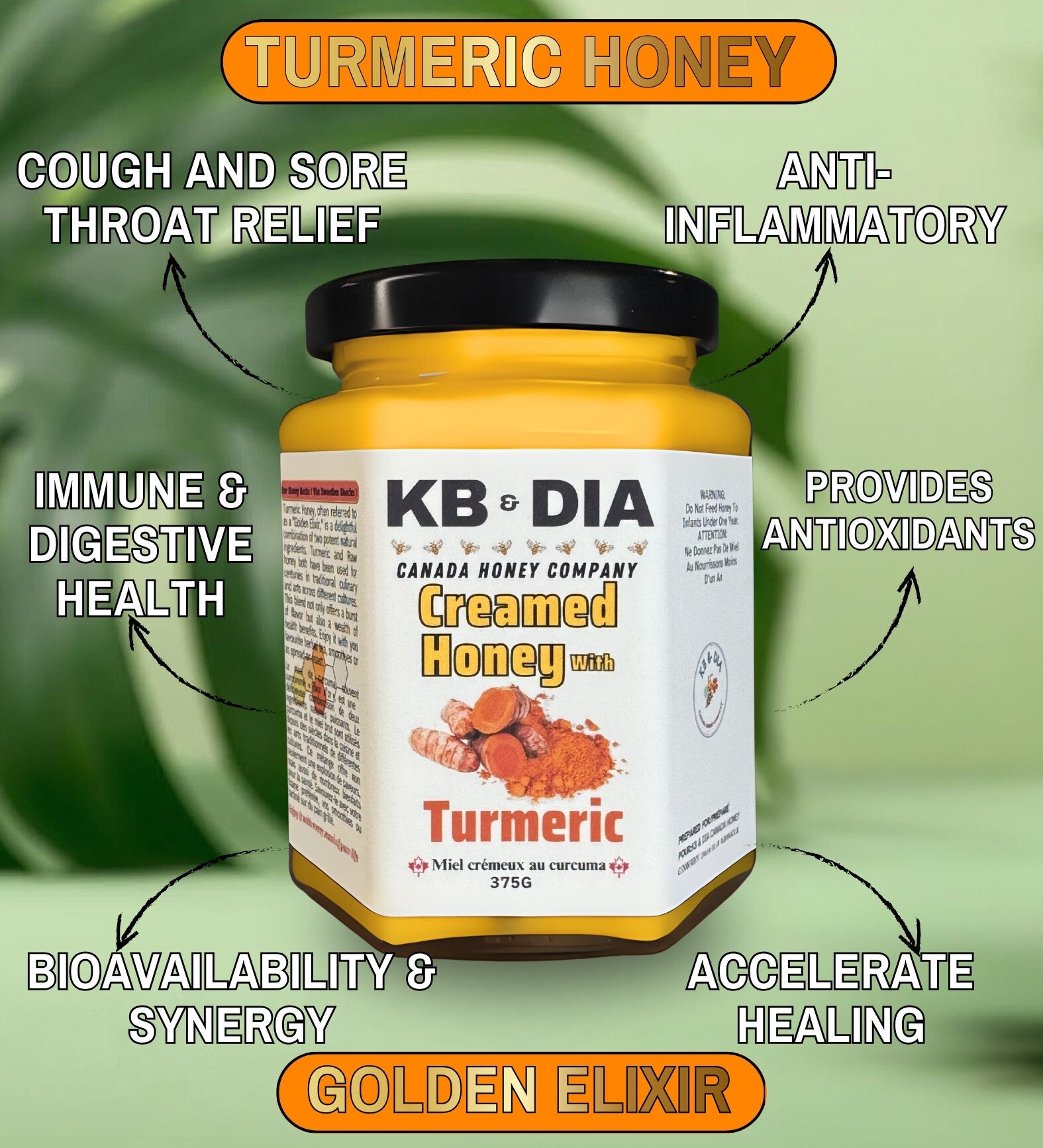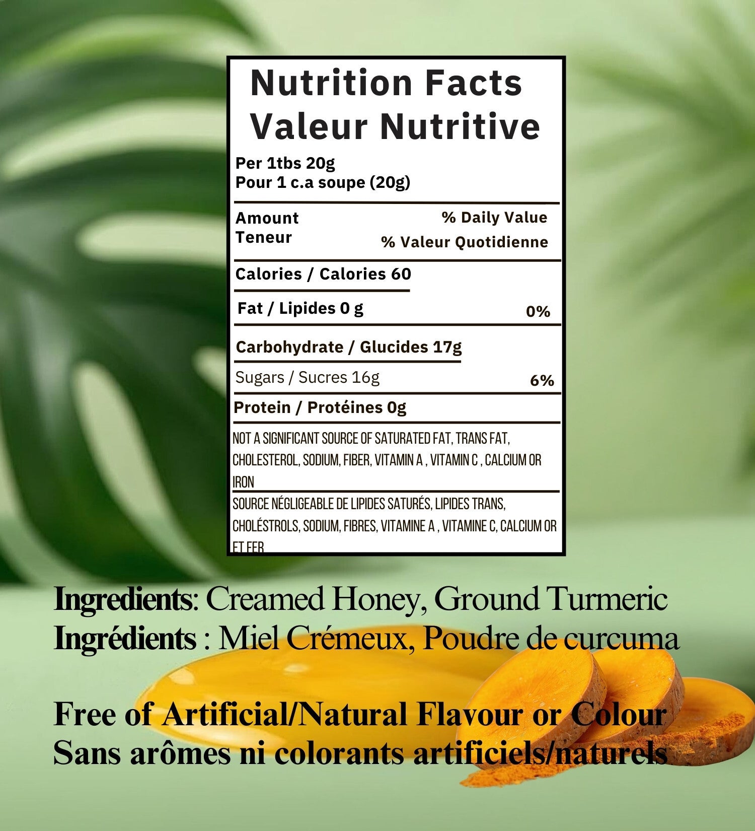 Turmeric Honey | 100% Canadian Pure Natural Raw Creamed Honey with Real Turmeric | 375G