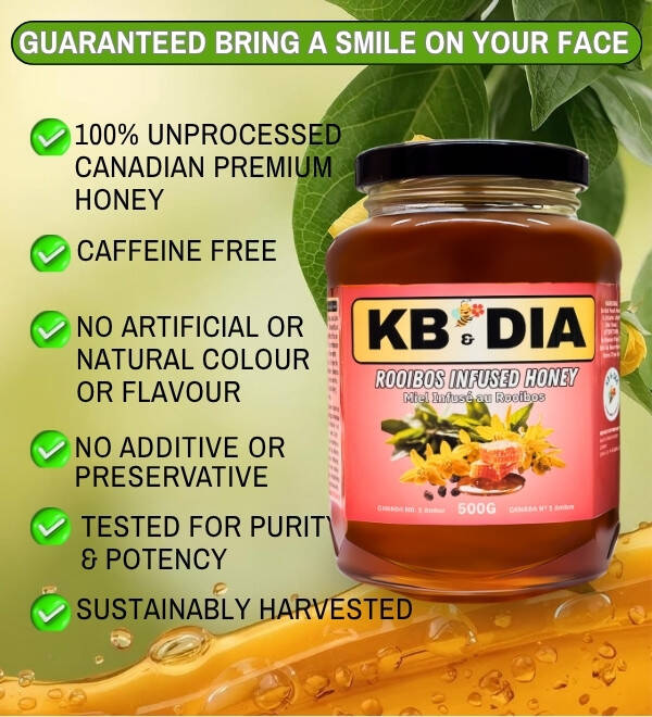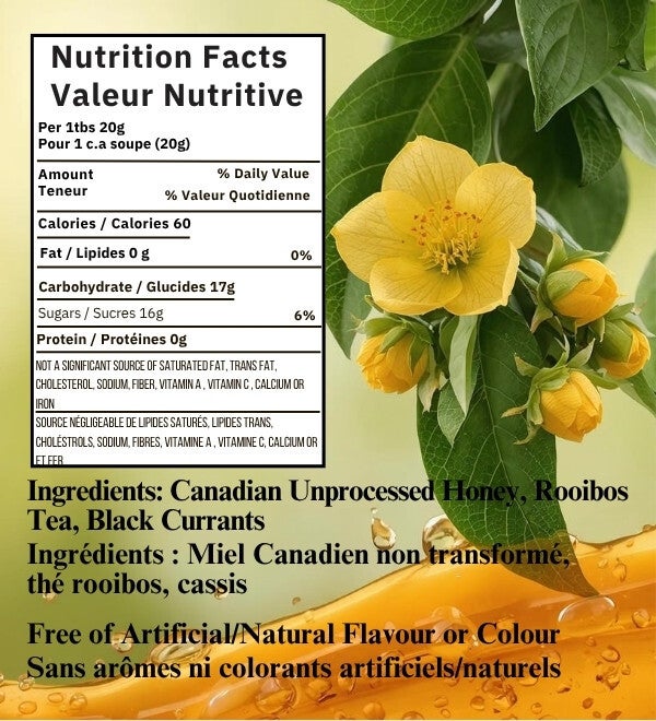 Rooibos Honey with Black Currants - 100% Canadian Pure Natural Raw Unpasteurized Honey with Rooibos Tea 500G