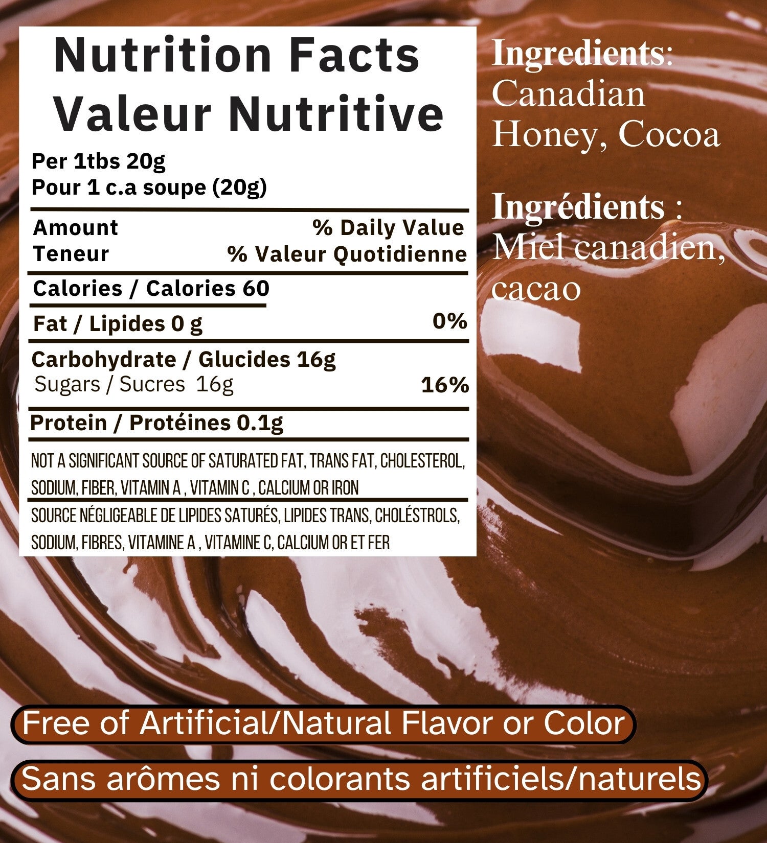 Chocolate Honey | 100% Canadian Pure Natural Raw Honey with Real Chocolate | 375G