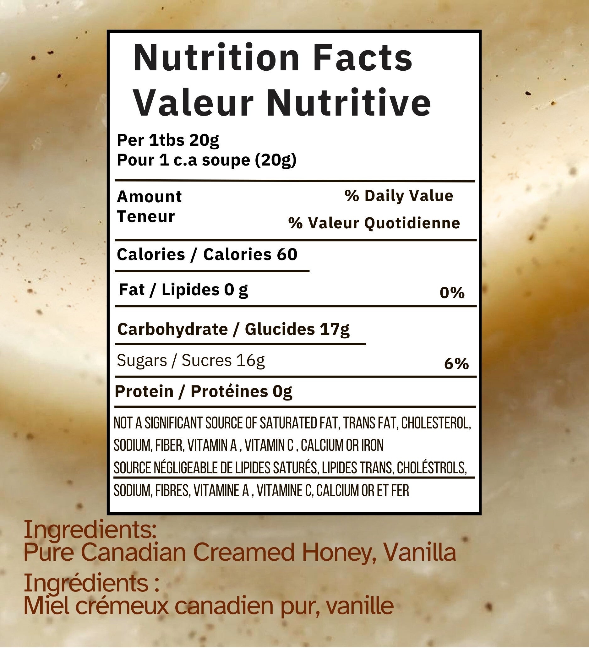 Ingredients : Pure Canadian Creamed Honey with Real Vanilla