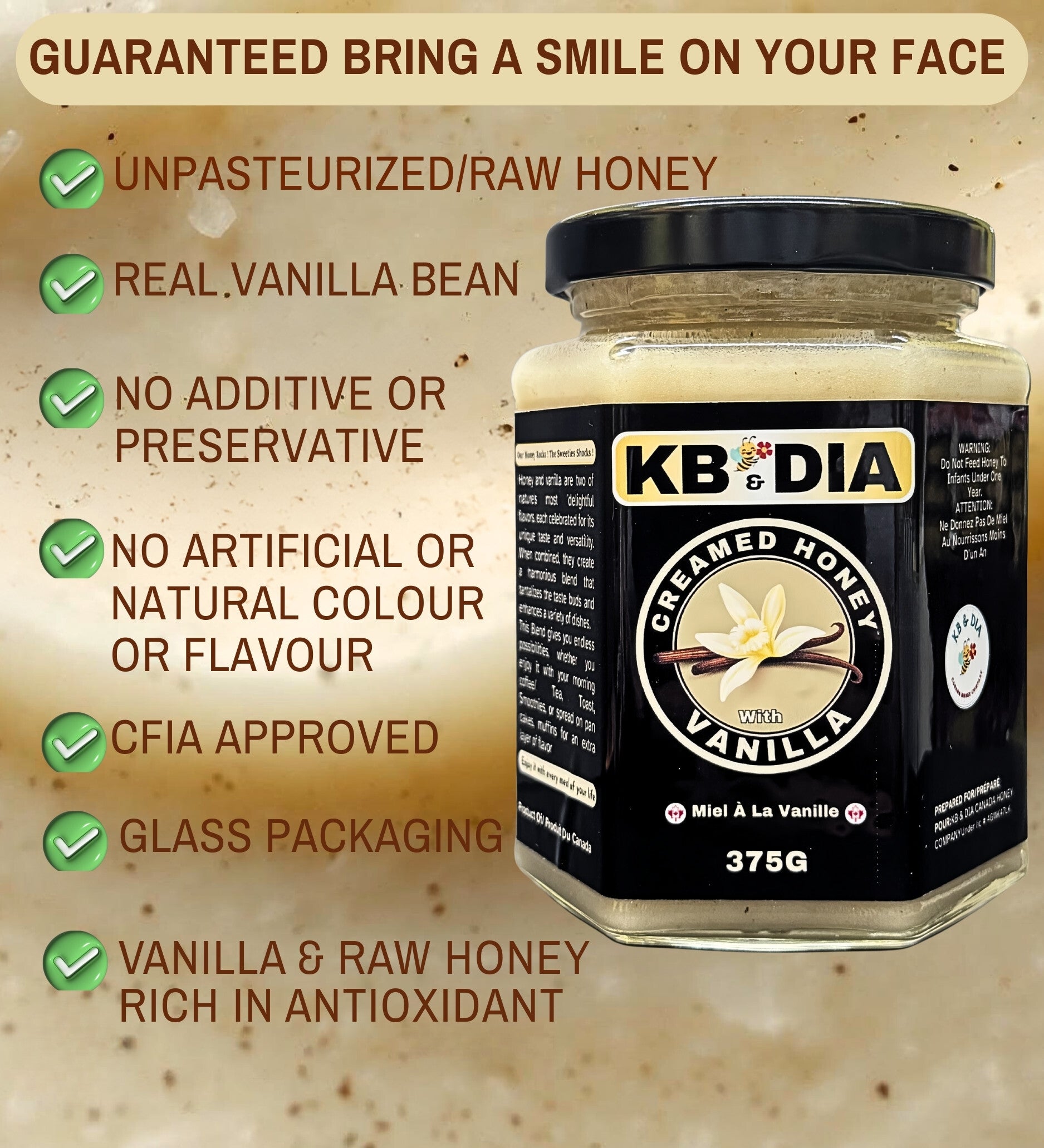 Vanilla Honey | 100% Canadian Pure Natural Raw Creamed Honey with Real Vanilla Beans | 375G