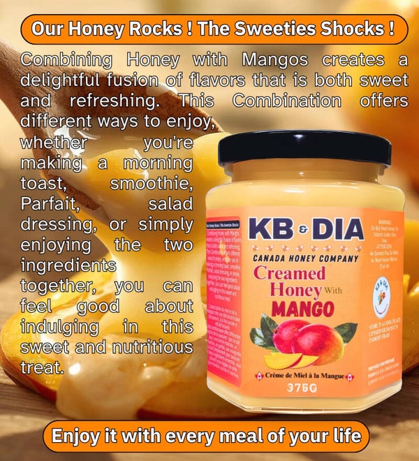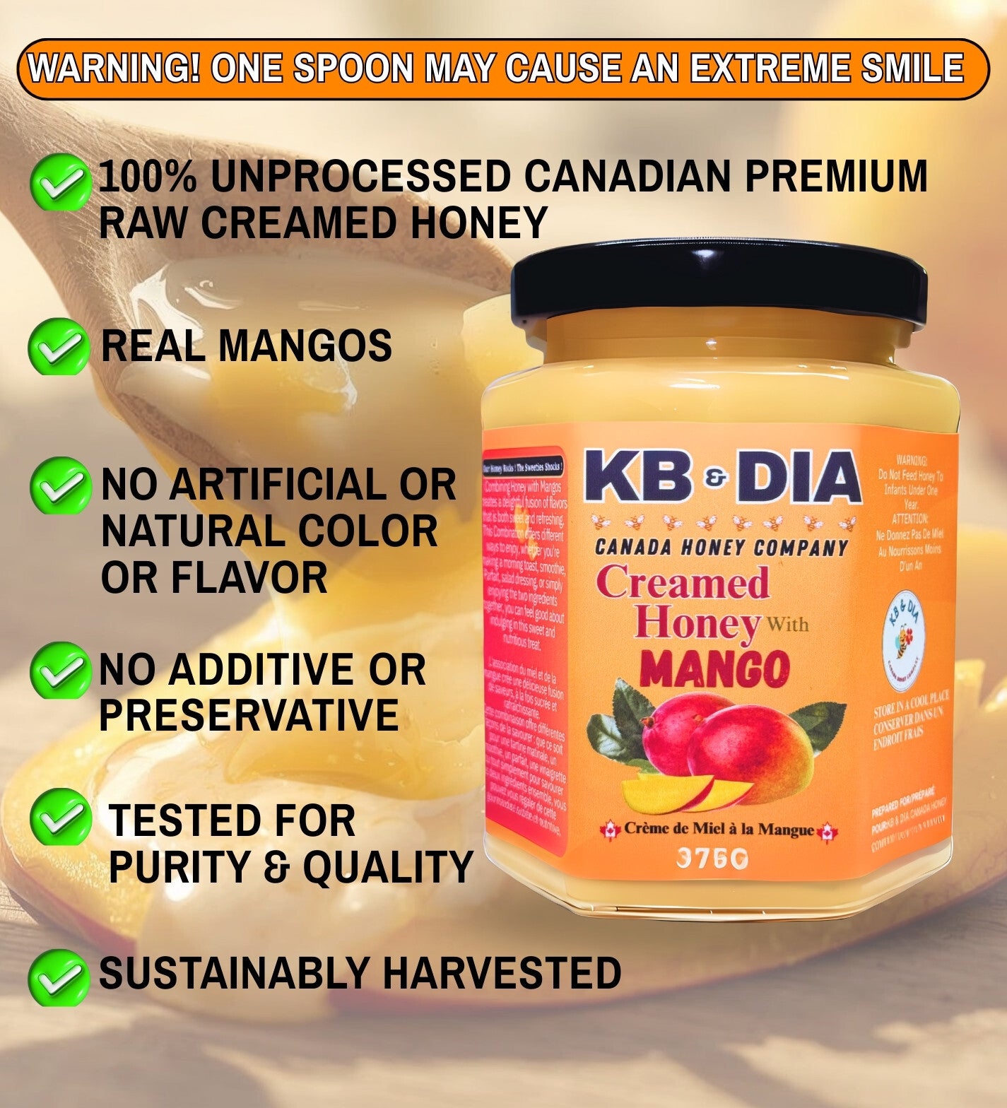 Mangos Honey | 100% Canadian Pure Natural Raw Creamed Honey with Real Mangos | 375G