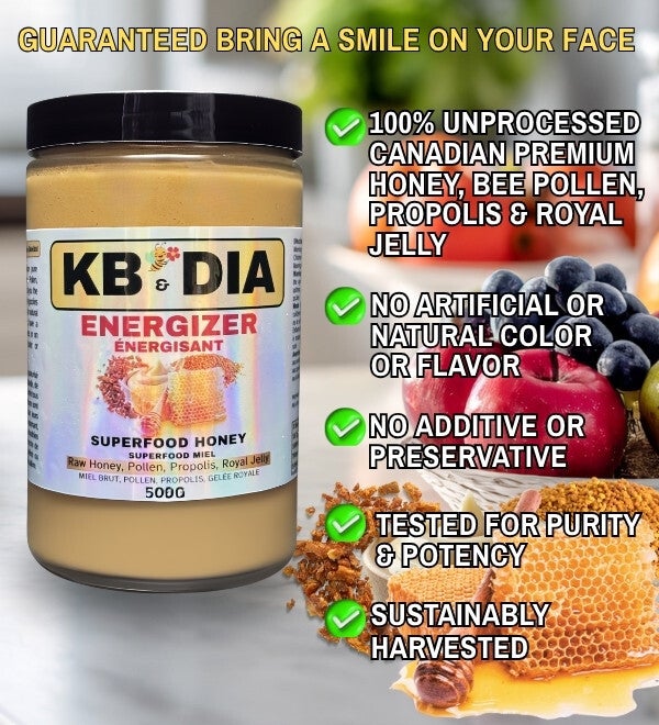 - Superfood Energizer: This 500g jar contains a potent blend of raw honey, pollen, propolis, and royal jelly to provide a natural energy boost.