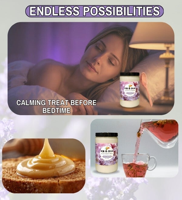 - OVERALL WELLNESS BENEFITS: Infused with high-quality lavender, this honey provides a delicate, floral aroma, unique taste, support Overall wellbeing and relaxation. It serves as an elegant flavor enhancer for high-end desserts, charcuterie boards, gourmet cheese pairings, and evening herbal tea.