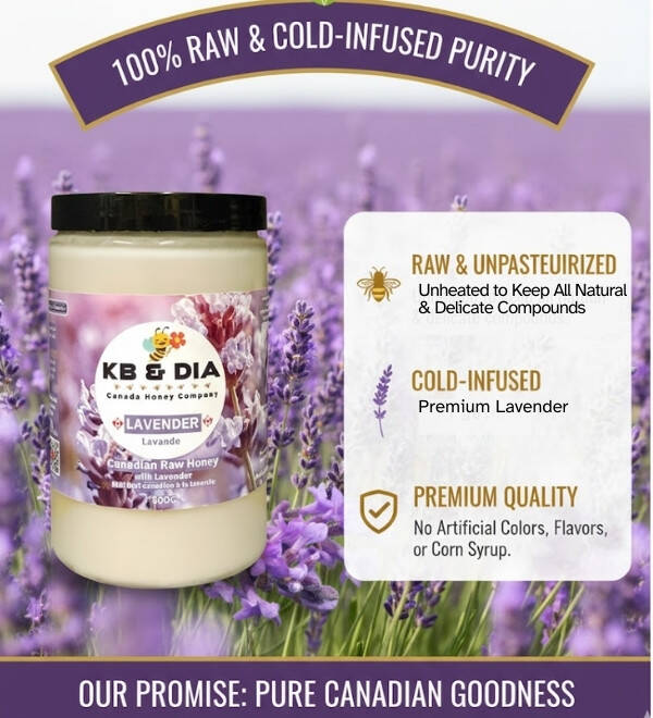 - CANADIAN QUALITY PROMISE: Pure, Canadian Creamed honey you can trust. We guarantee our Raw Creamed Honey is free from artificial flavors, colors, and corn syrup. Your satisfaction with the rich, aromatic quality is assured by our premium Lavender Raw Honey.