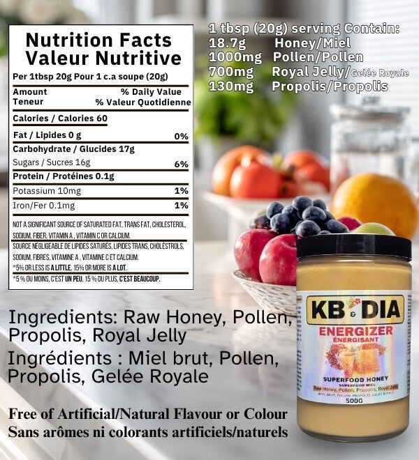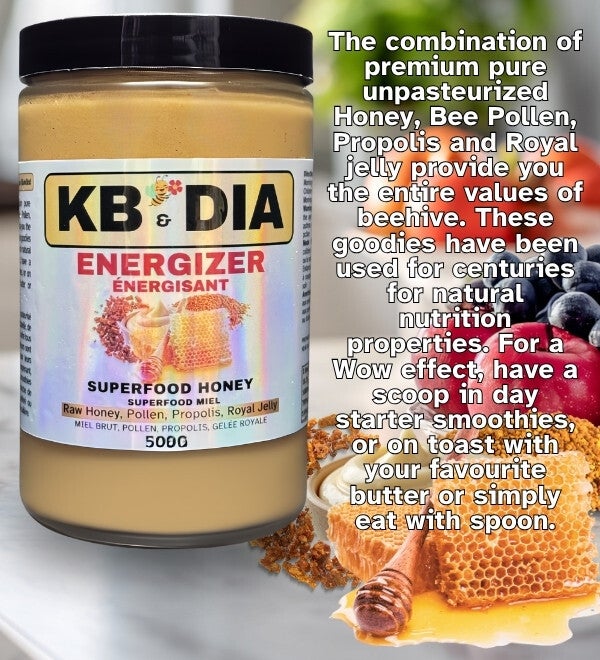 - Superfood Energizer: This 500g jar contains a potent blend of raw honey, pollen, propolis, and royal jelly to provide a natural energy boost.