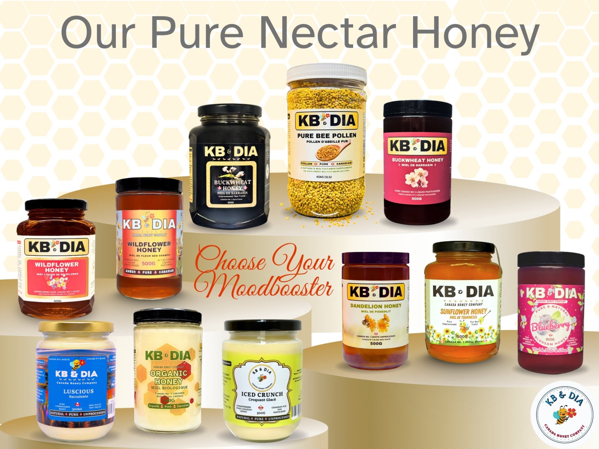 Welcome to our honey store! We offer a wide variety of premium quality honey and bee products as our entire range is guaranteed to be free of artificial or natural flavors, colors, preservatives, and additives for honey lovers and those looking for the perfect gift. Explore our selection of pure nectar honey and specialty honey, all sourced with care in Canada.